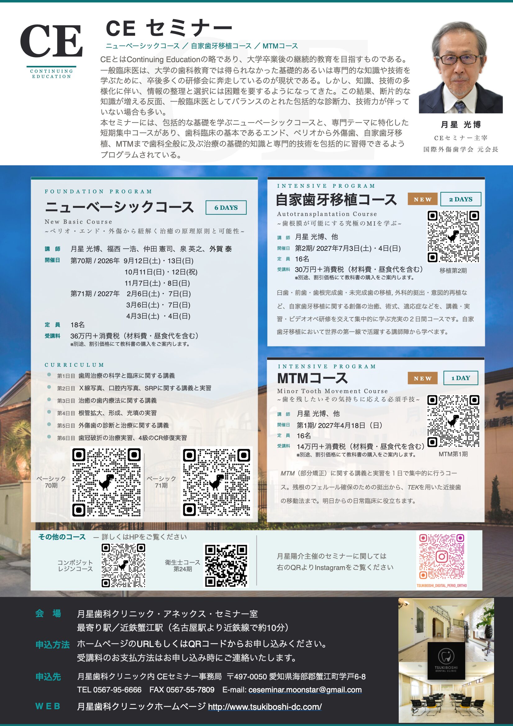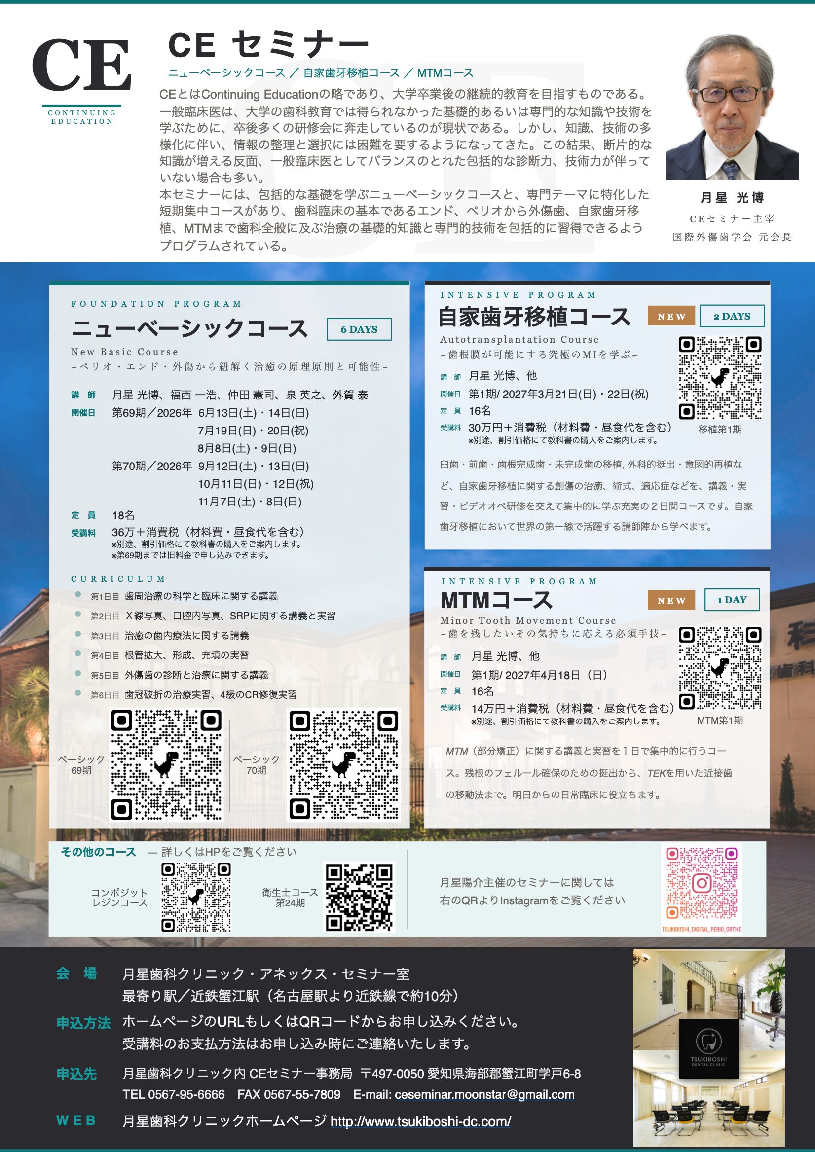 - 入会者はCEセミナーの再受講(実習は除く)を可能とする。ただし、再受講費1万円/1日が別途必要である。