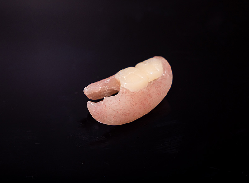 歯に固定するための金属バネを使わない入れ歯です。留め具が歯茎の色に近いため、見た目が非常に自然で、審美性に優れています。金属を使用しないため、金属アレルギーが気になる方にも選択肢となります。弾力性があり、人前で笑ったり話したりする際も、入れ歯だと気づかれにくく、審美性を重視する方に選ばれることの多い部分入れ歯です。