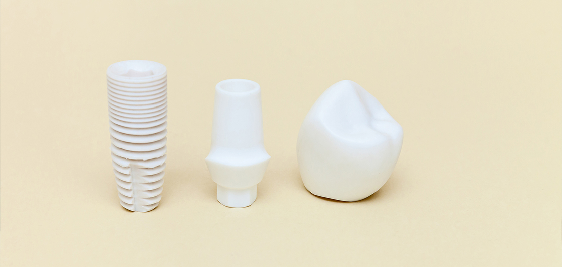 歯肉より上の見える部分に装着するパーツで、人工歯、被せ物と表現されることもあります。食べ物を噛む役割を担いますし、外見を形成する役割を担うため非常に重要です。使用する素材は患者さんに選択してもらうことが可能で、セラミックやジルコニアが代表的です。