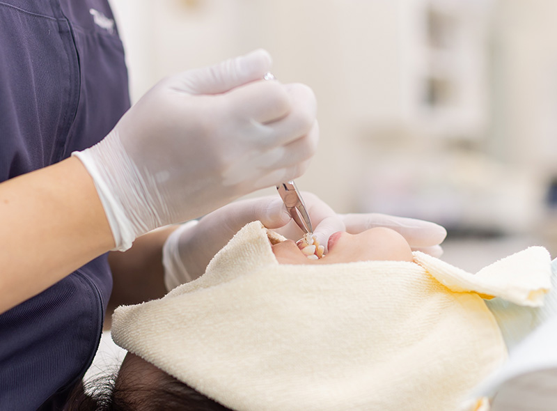 レントゲン検査や口腔内写真の撮影、虫歯や歯周病の検査も行って状態とリスクを明確にします。
