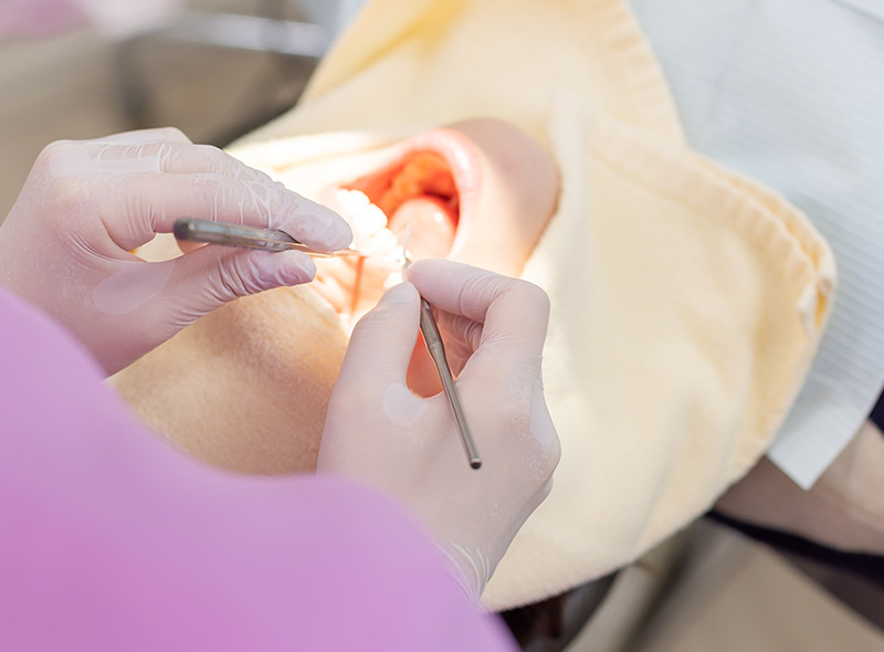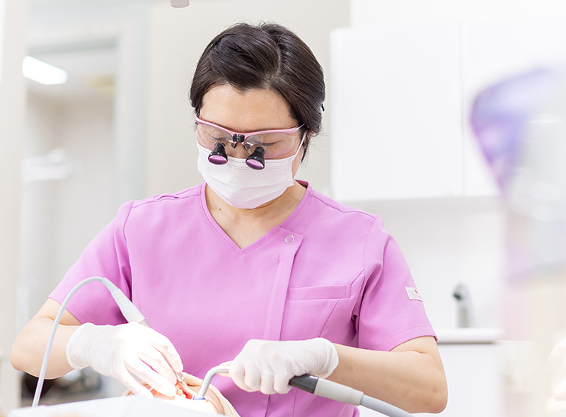 超音波スケーラーを用いて、歯周ポケット内のプラークや歯石を除去します。